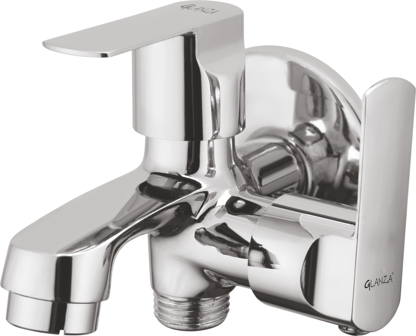 The Bib Cock 2-in-1 DN-16 by Glanza Donald is a multifunctional faucet offering two outlets for added convenience. Built with high-grade brass and finished with premium chrome, it is perfect for bathrooms, kitchens, and utility areas requiring dual water usage.