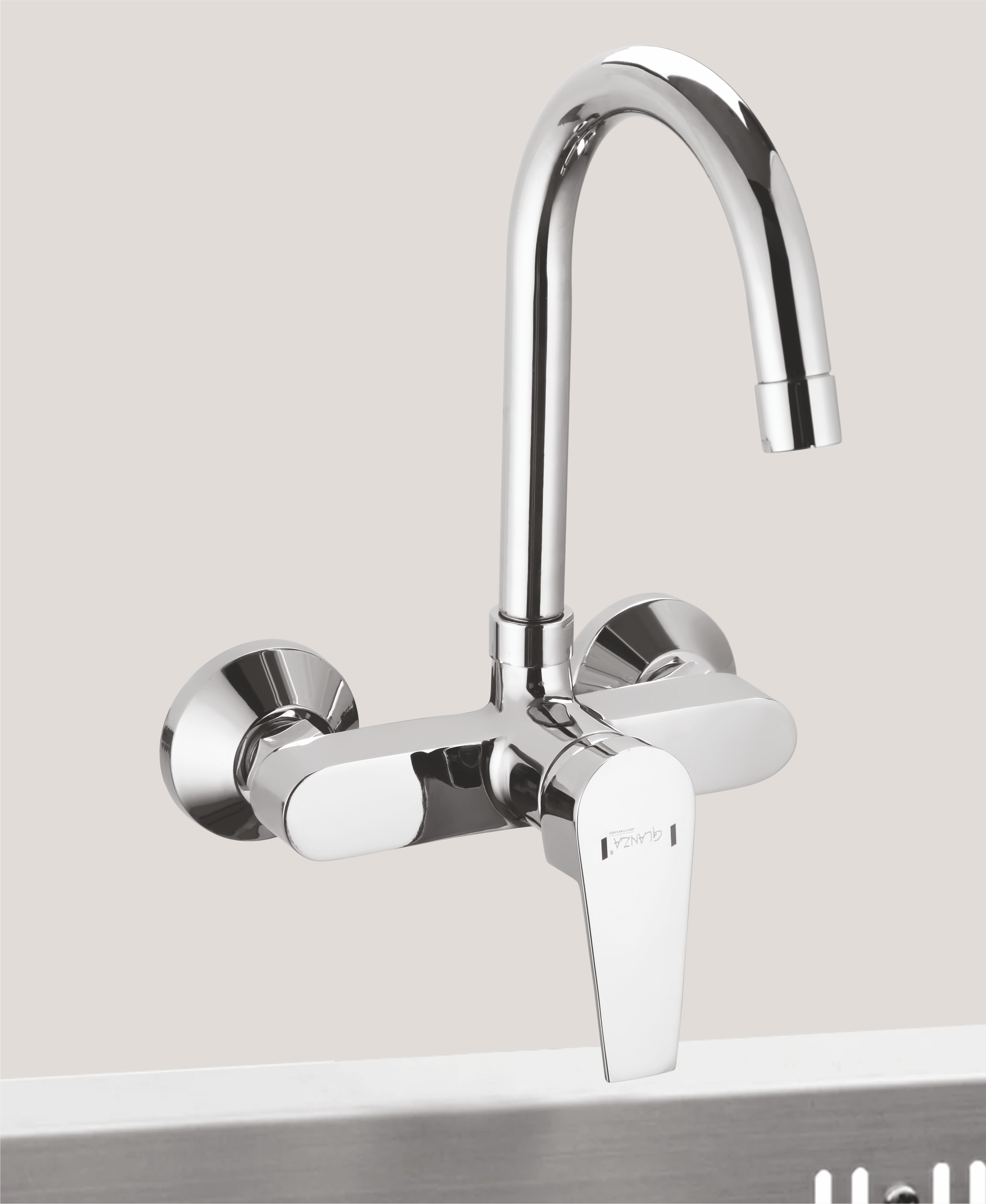 The ER-30 Single Lever Sink Mixer (Wall Mounted) from the Glanza Eros Collection offers a balanced combination of convenience, control, and sleek aesthetics for modular kitchens and modern wash areas. Featuring a wide swing spout and ergonomic single-lever operation, it delivers a seamless hot and cold water experience—perfect for everyday multitasking.