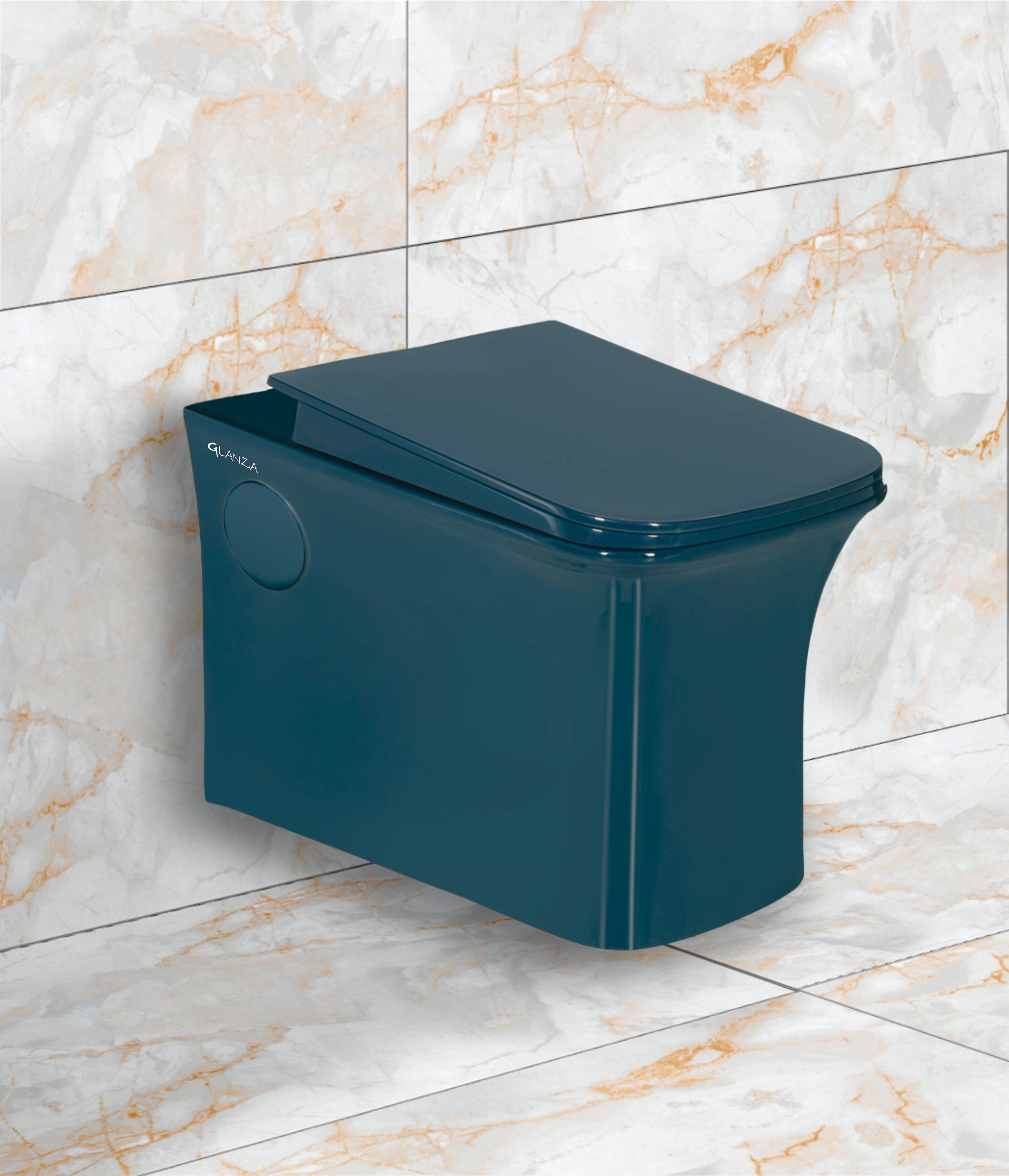 Glanza-Wall Hung Closet Simona Kinetic Blue (Glossy) | 535x355x365mm | Syphonic Flushing | Ceramic Western Toilet/Water Closet