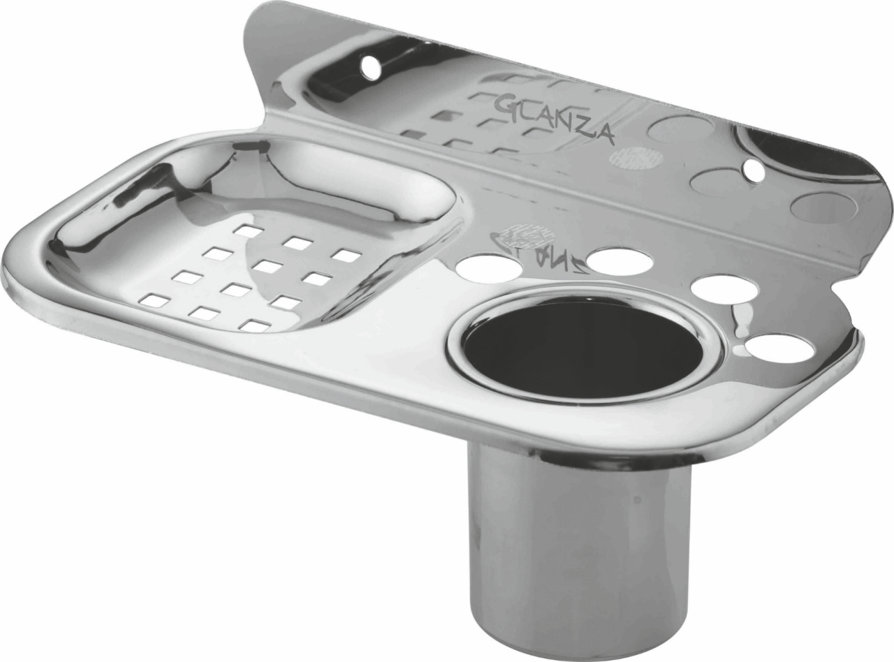 The Tumbler with Soap Dish-02 GSCT-173 Glanza features a dual-function design combining a tumbler and soap dish. Its durable build and polished finish make it a practical and stylish addition to any modern bathroom.