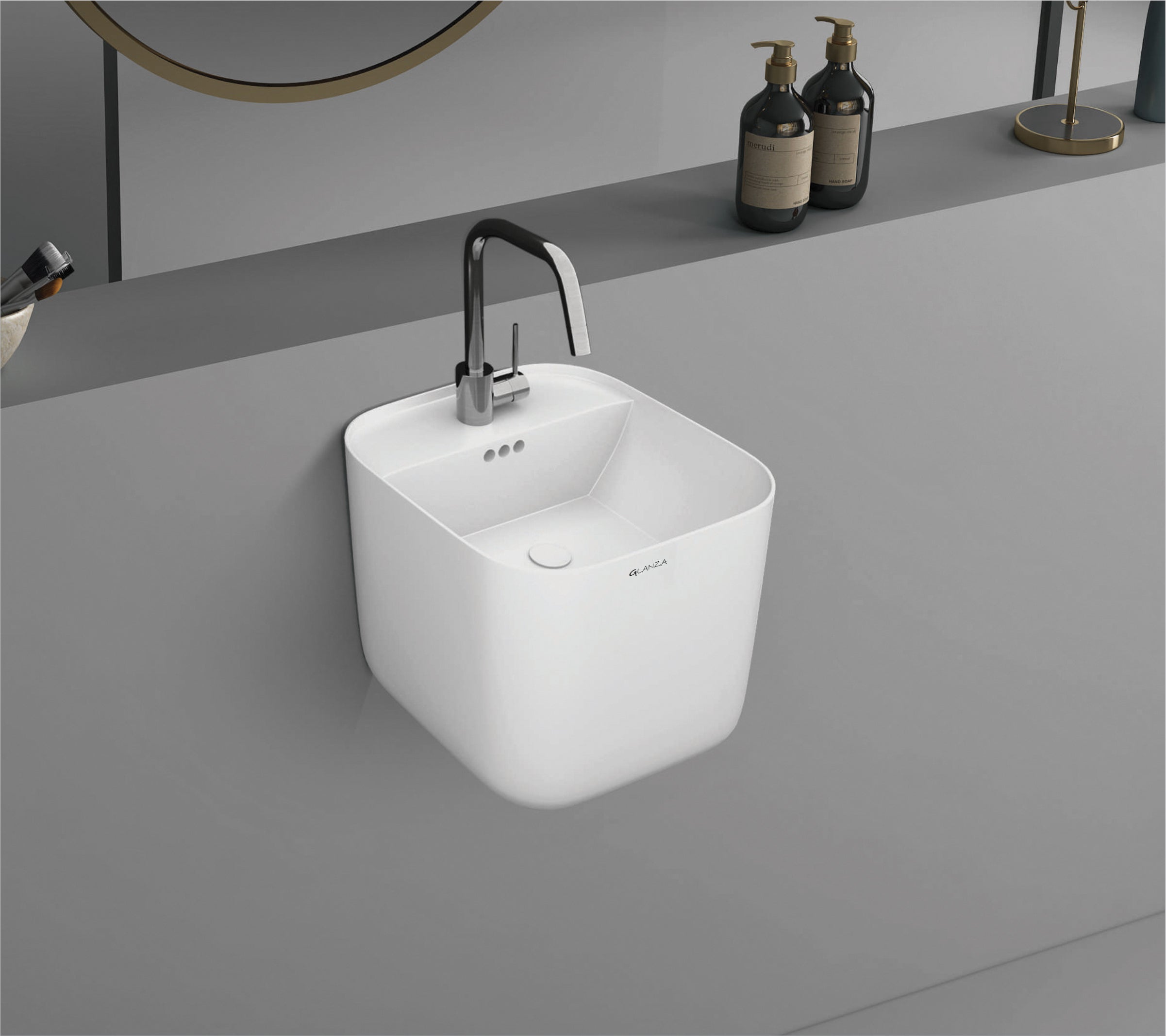 The Glanza TISSOT is an integrated wall-hung basin, designed to save space and enhance bathroom aesthetics.