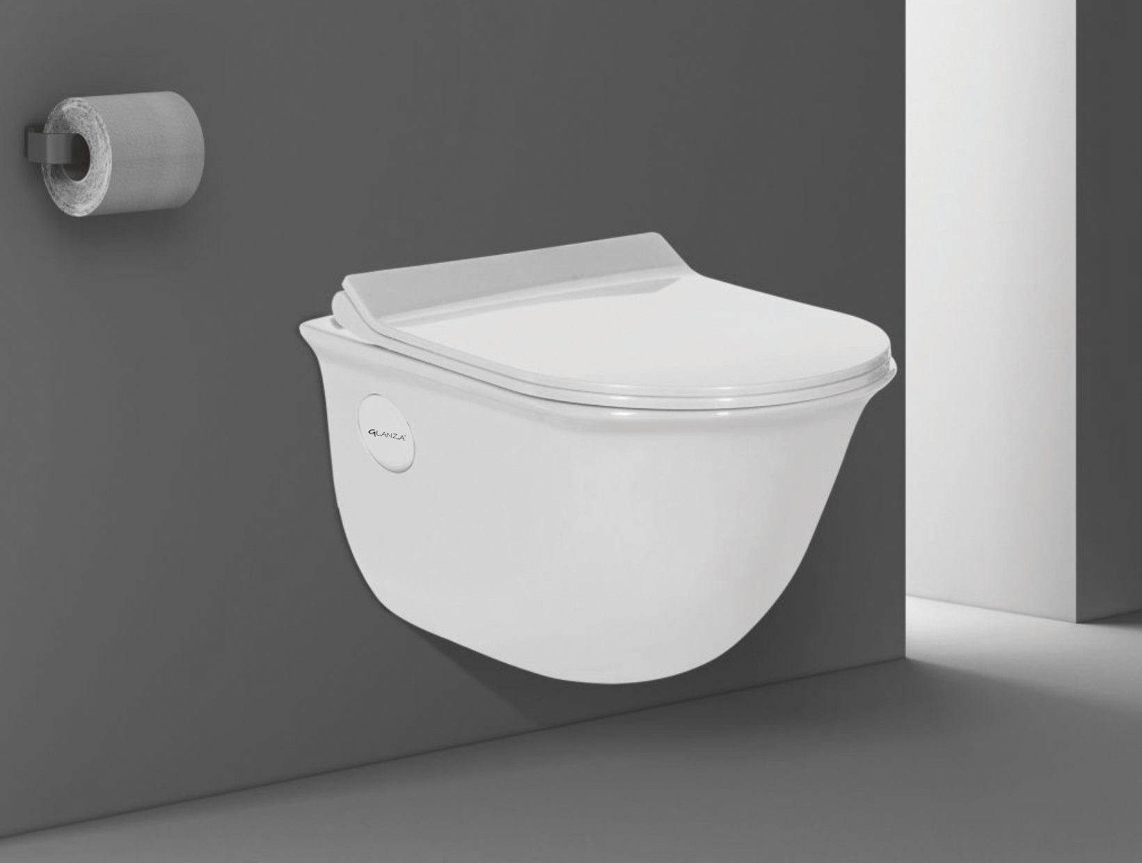 The Glanza ENIGMA Rimless Wall Hung Closet offers a sleek, space-saving design with advanced rimless flushing technology. Measuring L485 x W350 x H340mm, it is an excellent choice for modern bathrooms that demand hygiene, comfort, and style.