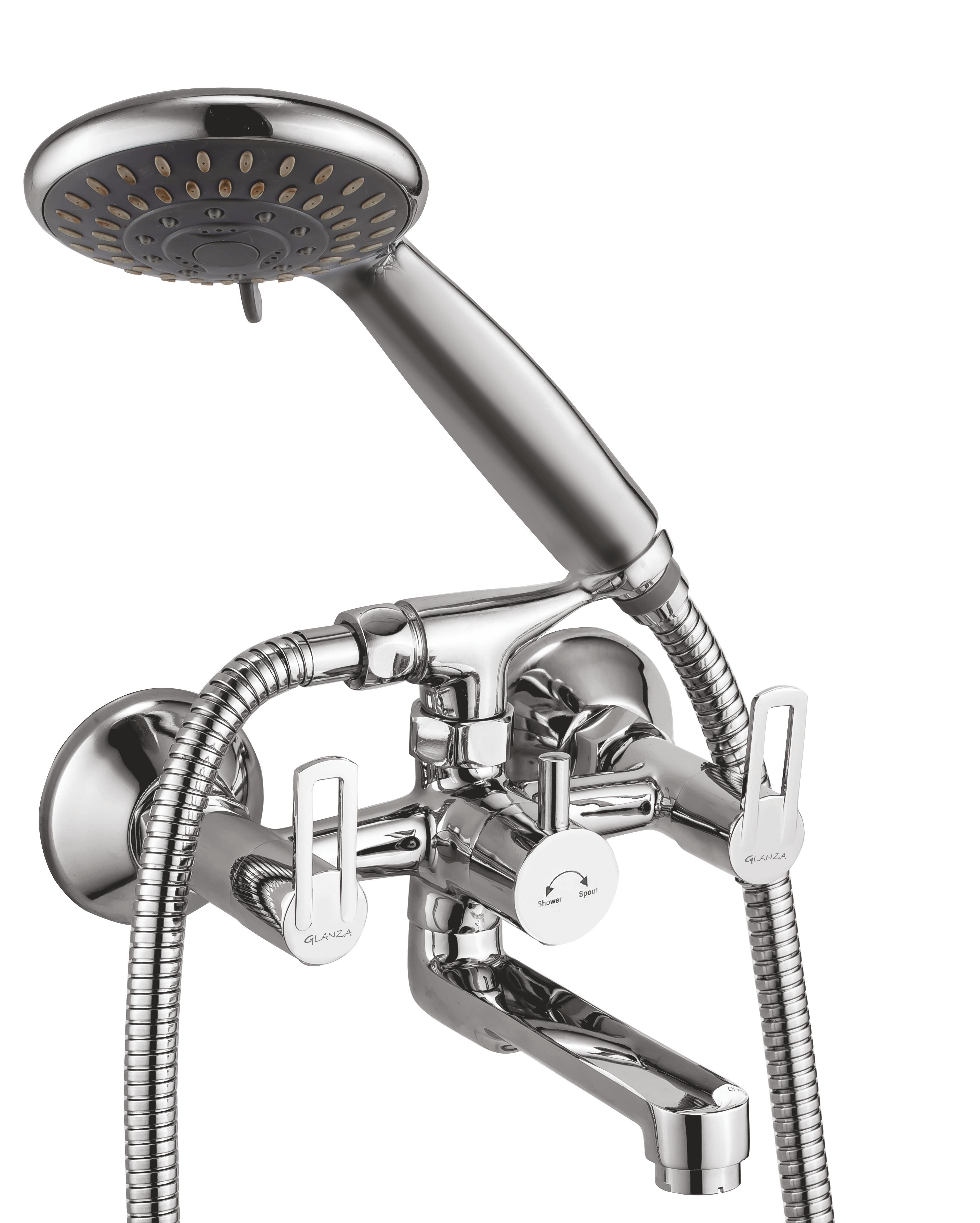 Upgrade your bathroom with the Wall Mixer Telephonic with Crutch – AE-25 from Glanza Arise Collection. This wall mixer features a telephonic shower outlet and a crutch for hand shower support, offering complete bathing convenience. Order now for a premium shower experience!