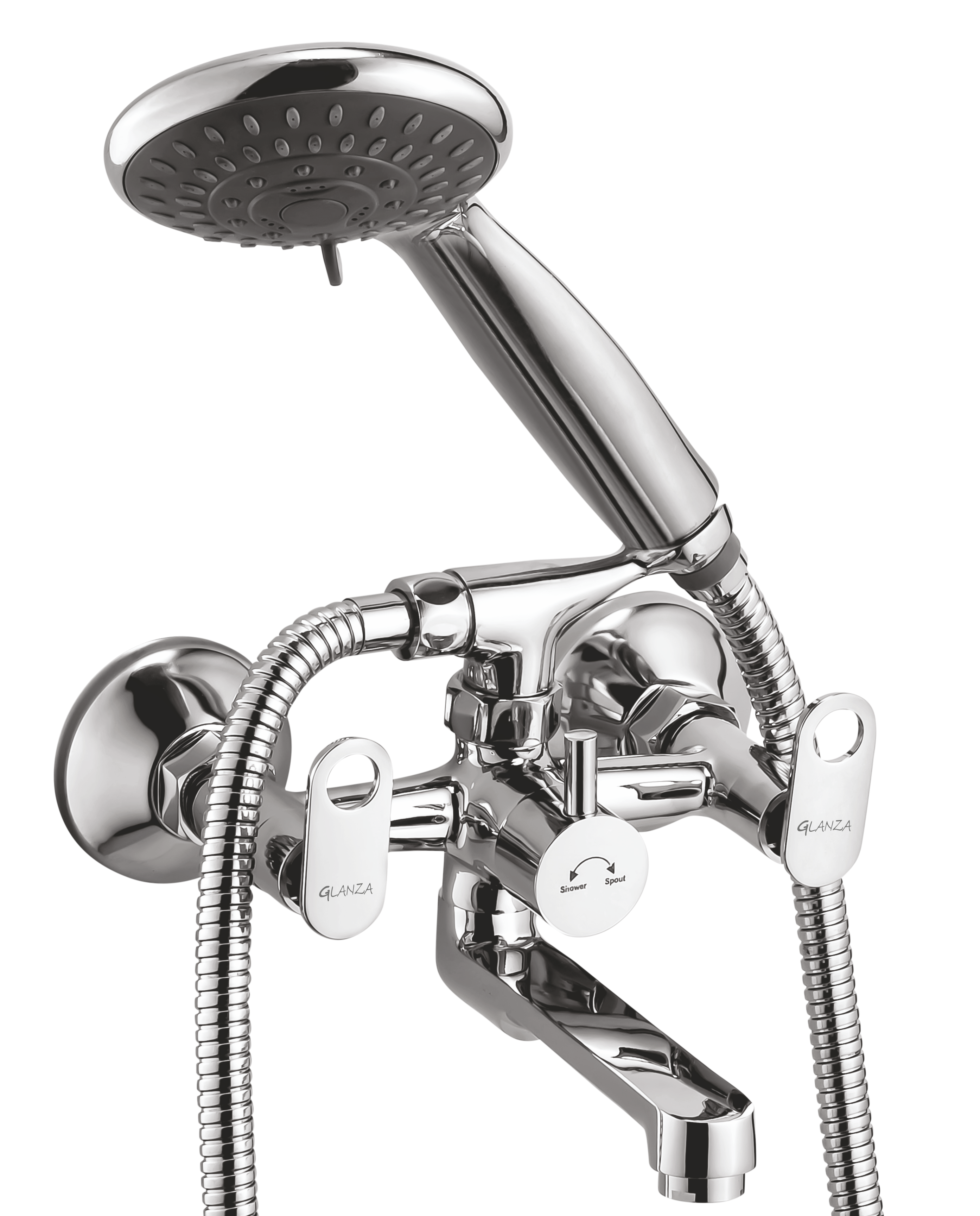 Enhance your bathing experience with the Glanza Oreo OR-25 Wall Mixer Telephonic with Crutch — a stylish and practical addition to any bathroom.